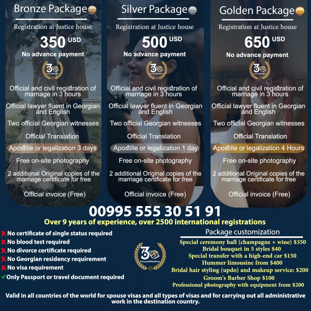 International marriages in Georgia are relatively straightforward for foreigners. Two foreigners can marry in Georgia without needing Georgian citizenship or residency permits. The process involves submitting required documents (including translated and notarized passports) to the Public Service Hall, attending a scheduled appointment with two witnesses, and obtaining the marriage certificate. Marriages performed in Georgia are recognized internationally, and certificates can be apostilled for use in other countries